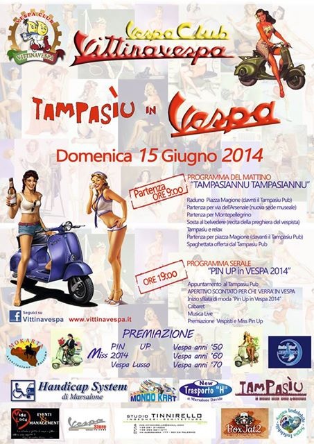 “Tampasiu in vespa”. Si chiama così la giornata organizzata dal club Vittinavespa insieme al Tampasiu pub domenica 15 giugno. Due programmi, uno mattutino e uno serale dove protagonista sarà la vespa. Alle 9 i vespisti partiranno da piazza Magione e … Continua a leggere →